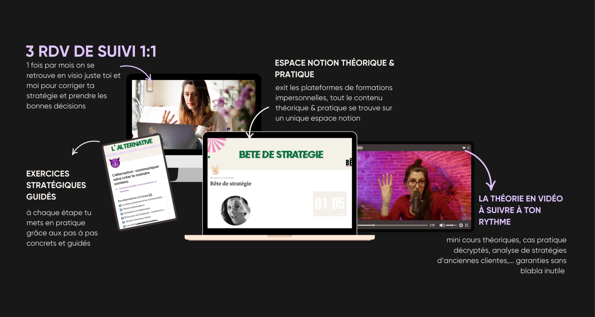Avec Bête de Stratégie je voulais faire différemment de tout ce qu’on retrouve sur le marché. Moi aussi j’en ai acheté des formations que j’ai à peine ouvertes ou toujours pas mises en application parce que commet rester motiver quand t’es solo devant ton écran sans personne à qui rendre des comptes ?